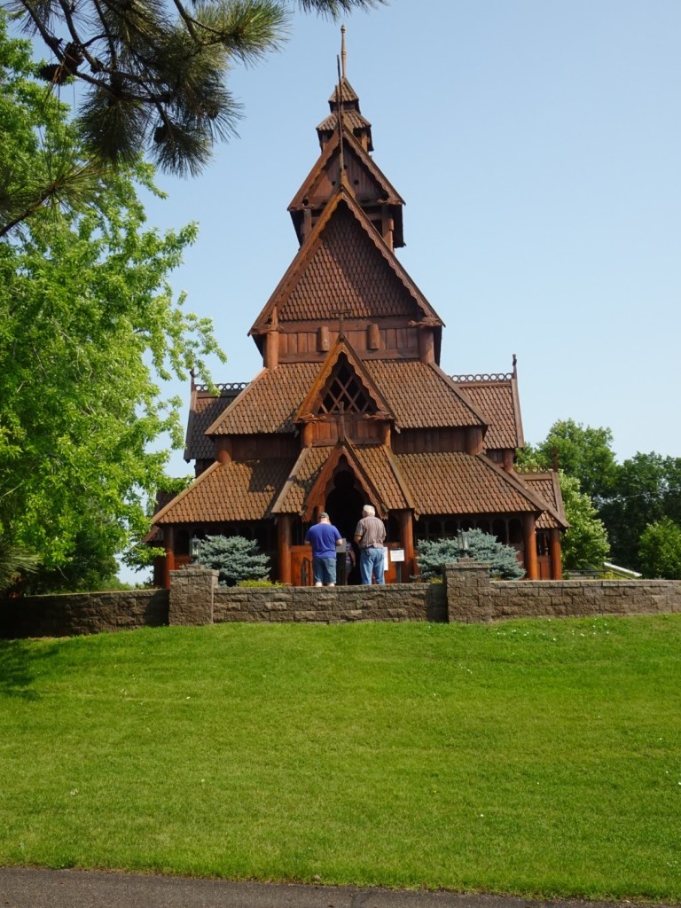 We then continued on to Minot. I read about the town’s history of illegal drugs and its connection to Al Capone’s bootlegging activities during Prohibition, leading to the town’s nickname, “Little Chicago.” But because Bob is Swedish and I am Danish, it was the Scandinavian Heritage Center we wanted to see. Here the state’s immigrants from Norway, Sweden, Denmark and Iceland are honored. The morning we visited was in the middle 90s so we spent a short time touring the grounds and seeing the highlights including the replica stave church. Then after a stop in the gift shop, we headed on.