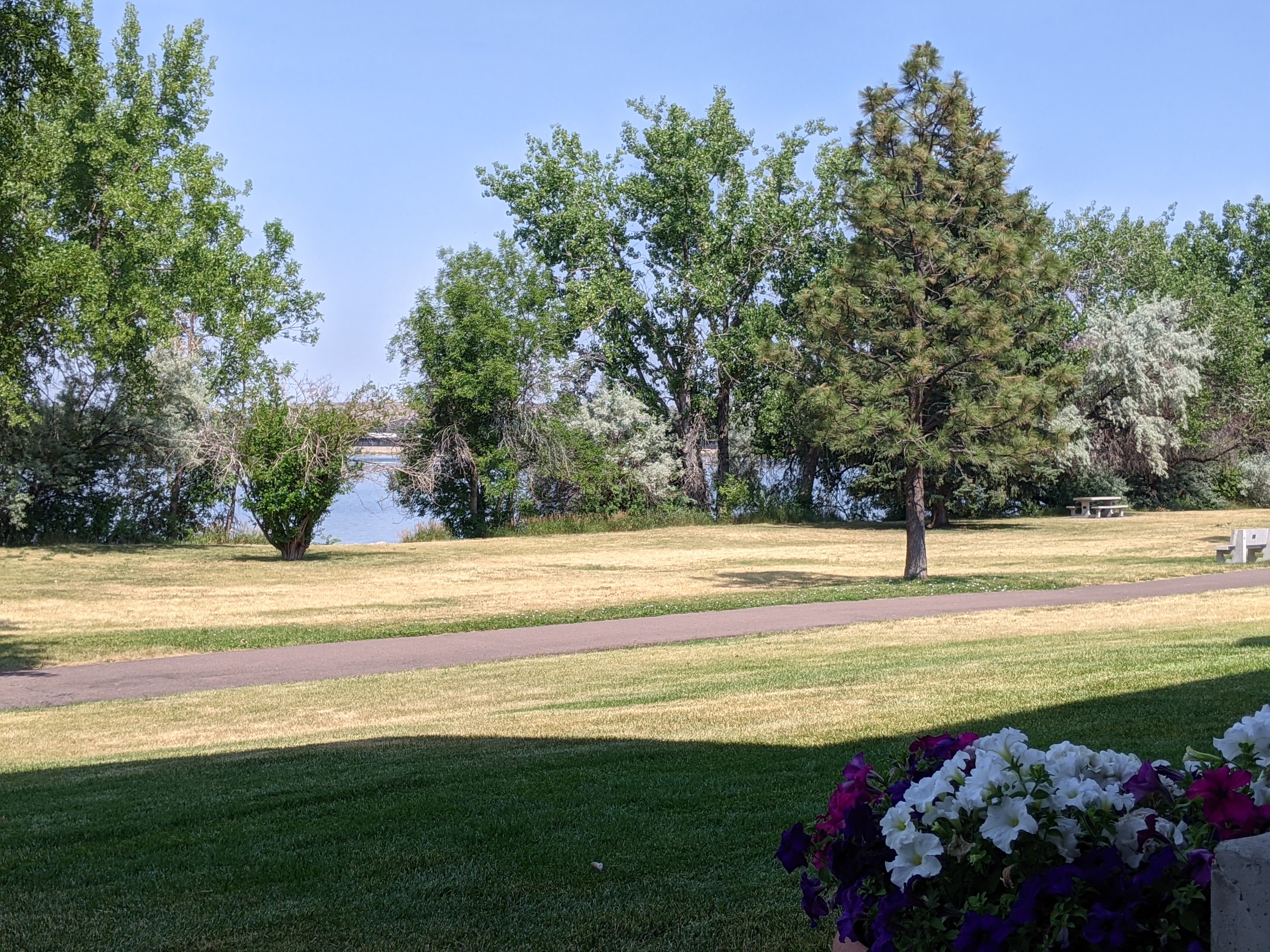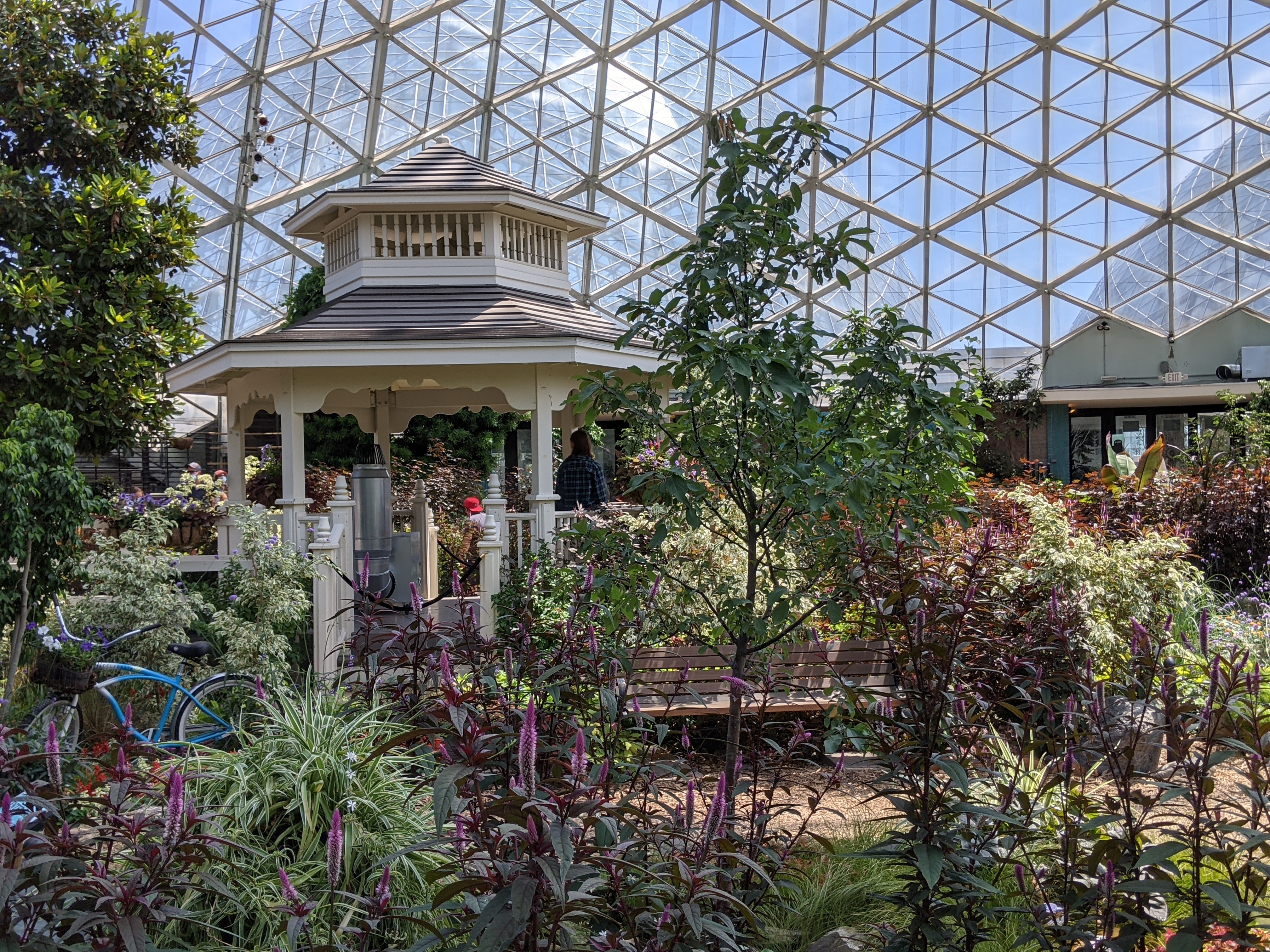 While we were definitely disappointed that we hadn’t been able to return east via Canada, we had learned a lot on our trek across northern United States. And we had one last stop: Milwaukee. We had invited our good friends of more than 40 years, the Terwalls from Kenosha, to come visit. How fun to be able to pick up with friends right where we left off last. We visited the Mitchell Park Botanical Domes which turned out to be a great spot to escape the continued heat.