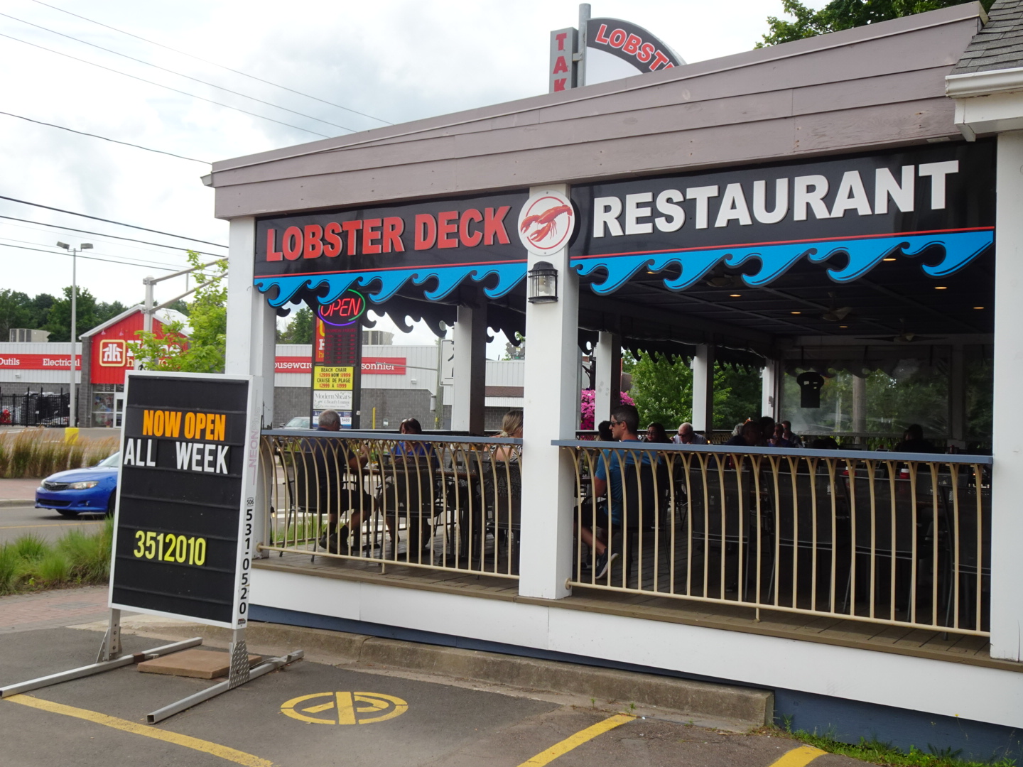 It’s only about four hours from St John to Haliax so the next morning we decided to take another sidetrip, this time to Shediac. Shediac is right on the North Umberland Sound which boasts the warmest waters north of the Carolinas so I shouldn’t have been surprised when we found lots and lots of traffic as we drove into town. We hadn’t eaten breakfast so when we saw a Victorian style home/restaurant with people eating on a large front porch we decided we needed to give it a try. The name, The Lobster Deck, says it all!
