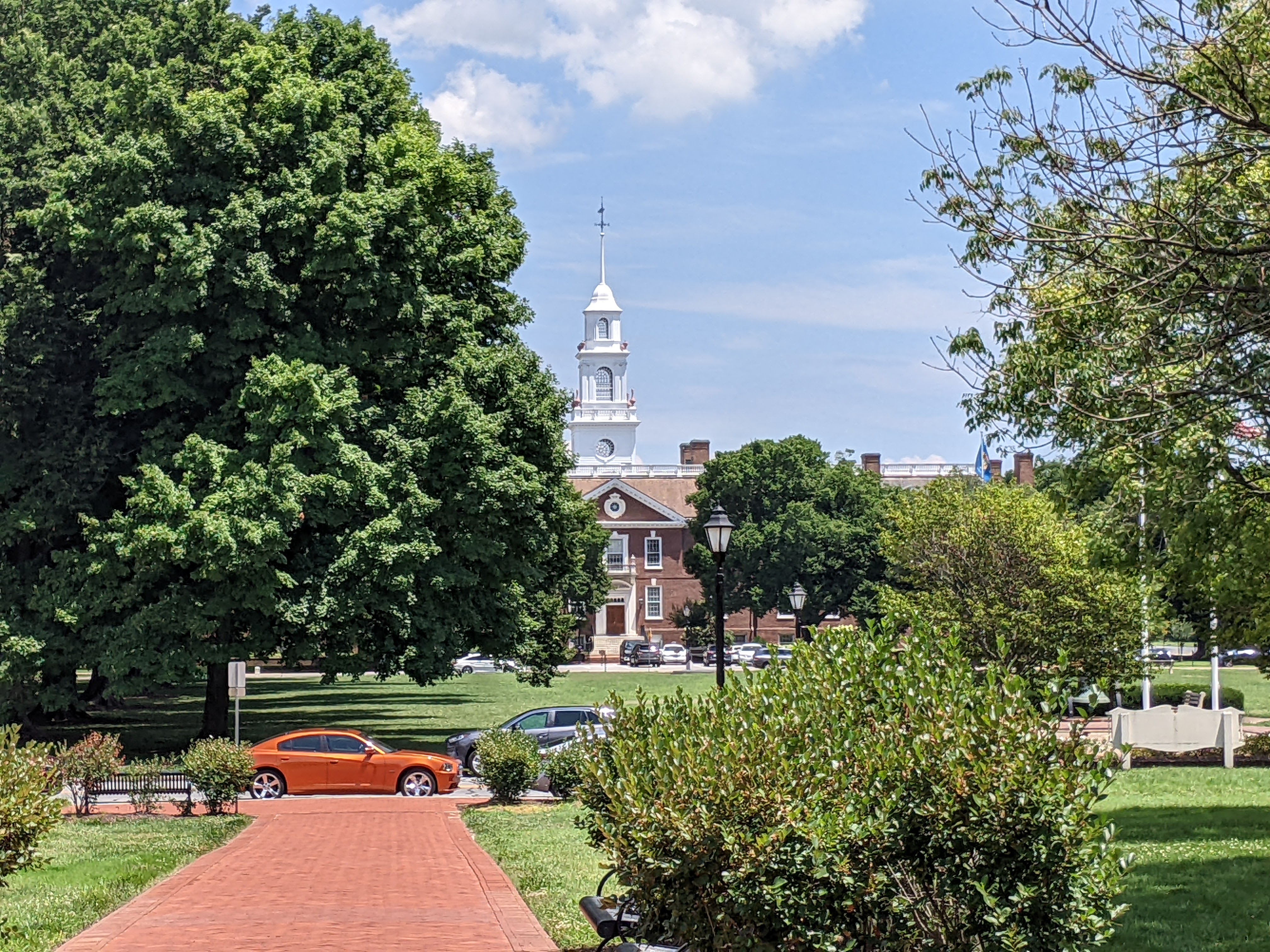 Delaware is definitely proud of being the first state. The reminders are everywhere: on their license plates, street signs, restaurants and hotels. Not knowing much about the state Bob and I decided to make the short drive up to Dover and check out the capital. William Penn’s surveyors laid out the city in 1711. There were two main original sites that are on the Green, which is the lovely historic square in the center of the town. The first was the Meeting House for the “Dissenters” (the Presbyterians) and the second was the Church Square, reserved for the Church of England. (The Meeting House is today the State of Delaware Museum.) I particularly enjoyed moseying through the old churchyard at Christ Episcopal Church. This is the church where Caesar Rodney, a signer of the Declaration of Independence, worshipped. The city has a much slower vib about it with a population of only about 37,000 but because of its location between large metropolitan centers, there still was plenty of traffic. It was a hot and humid day so we didn’t wander too much. But I felt a definite sense of awe as I thought about the people who had once strolled here and the conversations they had.